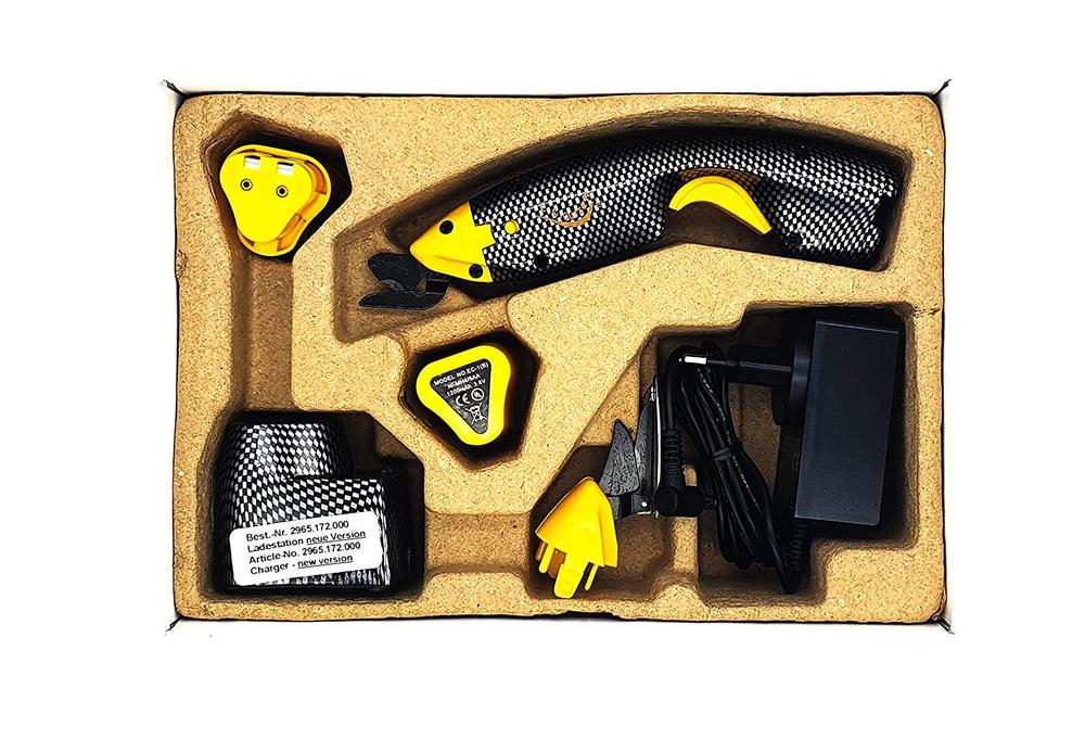 Aplikácia: priemyselné a technické tkaniny ako je napr. Kevlar®, Twaron®, Dyneema®, Zylon®, sklené a karbónové vlákna a ďalšie. Tieto elektrické nožnice si ľahko poradia aj s čalúnením, záclonovinami a syntetickými látkami. Karbidové čepele zaručujú perfektný strih. Prevádzka zo siete, alebo na nabíjaciu aku. Extrémne ľahká konštrukcia - iba 220 g. Kapacita nabíjacej batérie: 2 hodiny. Ergonomicky tvarovaná rukoväť na pohodlnú prácu. Nedochádza k podstrihnutiu látky, ako pri kotúčových rezačkách. Nožnice sú určené na strihanie jednej vrstvy technickej textílie (odporúčame do 200 g/m2, max 2 mm). Vysoká kvalita Súprava obsahuje: 1 držiak 2 rezacie hlavy (pre rovný a zakrivený strih) 1 transformátor 1 nabíjacia stanica 1 sieťový konektor 1 nabíjacia batéria