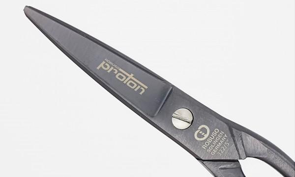 Nožnice PROTON sú špeciálne vyvinuté nožnice na strihanie technických tkanín a vlákien (kevlar, sklené vlákna, aramid, koža, guma a pod.) Sú tak vhodné pre tie najnáročnejšie aplikácie. Sú potiahnuté keramickou vrstvou oxidu kremíka, ktorá zaručuje účinnú ochranu proti opotrebovaniu vďaka super pevnému ostrie. Zároveň táto vrstva pôsobí proti oxidácii, zaručuje ľahký chod nožníc vďaka minimalizácii trecieho účinku a zabraňuje reakcii medzi strihaným materiálom a kovom. Chemicky indiferentné vlastnosti povlaku nožníc aktívne chránia nožnice proti znečisteniu, čo je veľkou výhodou napr. pri strihaní zlepených materiálov a zároveň umožňujú ľahkú údržbu nožníc. Možnosť regulácie strihu utiahnutím skrutky. Materiál: uhlíková oceľ (CS), (C60). Materiál rukoväte: uhlíková oceľ (CS) s lakovanou rukoväťou. Mikrozúbky na na oboch čepeliach. Kalená skrutka = vysoká stabilita - trvalá bezproblémová funkcia otočného kĺbu.