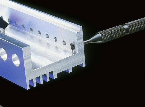 Ako vymeniť nôž: Zatiahnite silne za hliníkový koniec rukoväte, až sa vysunie tenký šesťhranný kľúč, ktorý pasuje do skrutky držiacej nôž.
