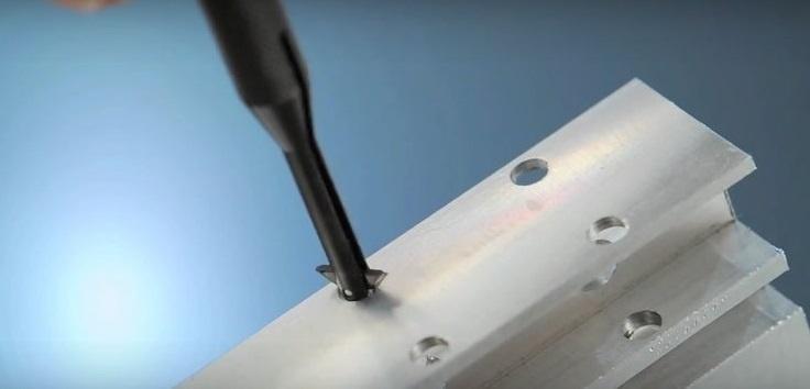 Reverzný záhlbník s vymeniteľným nožom stredný. Súčasťou rukoväte je imbusový kľúč, slúžiaci na utiahnutie, či uvoľnenie noža. Ako vymeniť nôž: Zatiahnite silne za hliníkový koniec rukoväte, až sa vysunie tenký šesťhranný kľúč, ktorý pasuje do skrutky držiacej nôž. Skladá sa z: Rukoväť Oceľová rukoväť. Nôž 1 ks - R2 (BR2001) rozsah 5 - 10 mm.