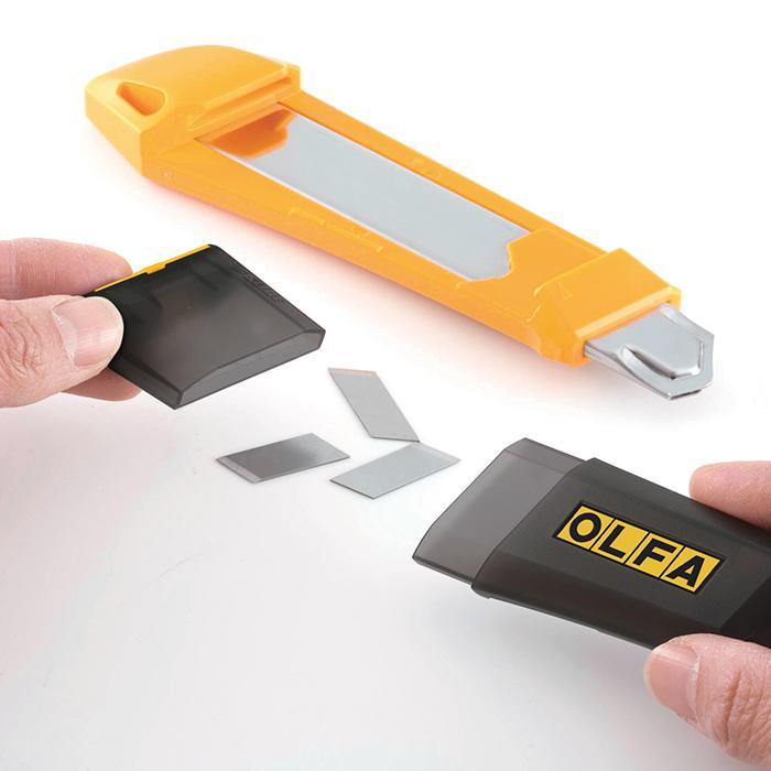 Fréza OLFA s poistkou čepele Auto-Lock. Vybavený integrovaným zásobníkom na zlomené nože. Rukoväť z plastu ABS. Zásobník zaručuje okamžité a bezpečné uloženie zlomených segmentov nožov v bezpečnostnom boxe, môže slúžiť aj ako zásobník na nové nože. Vhodné na použitie napr. v stavebníctve (práca s textilnými a izolačnými materiálmi) a v priemysle (všetky údržbárske a výrobné činnosti). Inštalovaná čepeľ: LB Rozmery: 150x40x15 mm