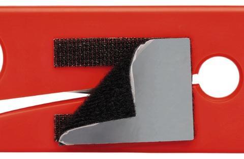 Môžete nôž pripevniť pomocou dodávaného suchého zipsu, napr. Na palubnú dosku.