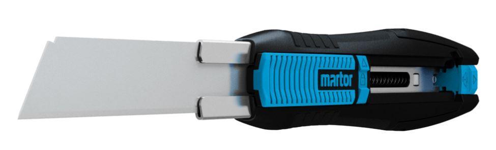Bezpečnostní nůž Martor Secunorm 380001 je nůž s instalovanou dlouhou čepelkou 79.60. Mezi jeho hlavní charakteristiky patří jednoduchý, ergonomický design, automatické ovládání čepele pružinou a velmi snadná výměna čepele. Tento typ nože je použitelný také pro standardní odlamovací čepele, nicméně toto důrazně nedoporučujeme, jelikož tento typ čepele je v rozporu s nabízenou bezpečnostní funkcí nože. Dlouhá čepel je ve skutečnosti zdrženlivé vyjádření, vysunutá čepel má délku přes 7,8 cm. Bez obtíží řeže čtyř-vrstvé kartony, pytle, papír, role, stavební pěny a polystyrenové desky. K výměně není potřeba žádných pomůcek. Na konci rukojeti je hrot, který stlačíte a nosič s čepelí vytáhnete ven z rukojeti. Rukojeť nože SECUNORM 380 je precizně tvarovaná, pohodlně a měkkce se drží a má drážkovaný posunovač. Výjimečně robusní v každém ohledu: nůž má vodící lištu, která je vyrobena z kovu výjimečně pevného a odolného proti obrušování. Rukojeť je z vysoce kvalitního plastu. Nůž SECUNORM 380 je určený pro praváky i leváky. Stačí jen otočit čepel o 180°. Otvor pro zavěšení na konci slouží k pověšení nebo připevnění nože. Rozměry: 170,5x20x34 mm Váha 78 g