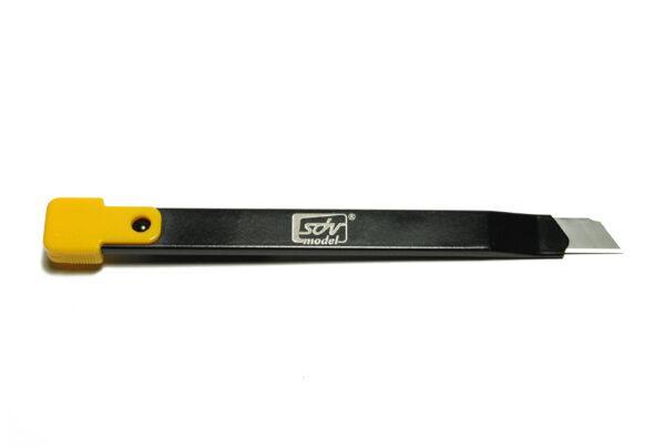 Nože sú vybavené zámkom plochej čepele. Vhodné na kancelárske použitie, rezanie papiera, plastov atď. Nainštalovaná čepeľ: AB Rozmery: 120x10x5 mm