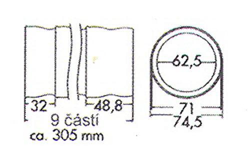 Segment k sacím hadicám predávame po 1 dieliku - tj. 48,8 mm. MEDZNÉ TEPLOTY Bod tavenia: 165°C Max. pracovná teplota: 76°C ANTI-STATICKÉ ELEKTRICKÉ VLASTNOSTI Povrchový odpor: 1.000E3 Ohm Odolnosť proti hluku: (< 6.000E2 Ohmov)