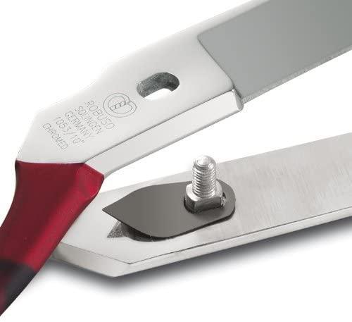 Modro leštené čepele (proces tzv. modrého leštenia je skutočným remeselným umením a zároveň významným prvkom, ktorý je charakteristický pre kvalitu nožníc ROBUSO. Nožnice opracované procesom modrého leštenia majú veľmi jemný profil, ktorý dáva pod svetlom modrý odlesk. Výkon takýchto nožníc je vzhľadom povrchových nedostatkov nezanedbateľne vyššie a nožnice sú vďaka nemu zároveň chránené proti hrdzi.).