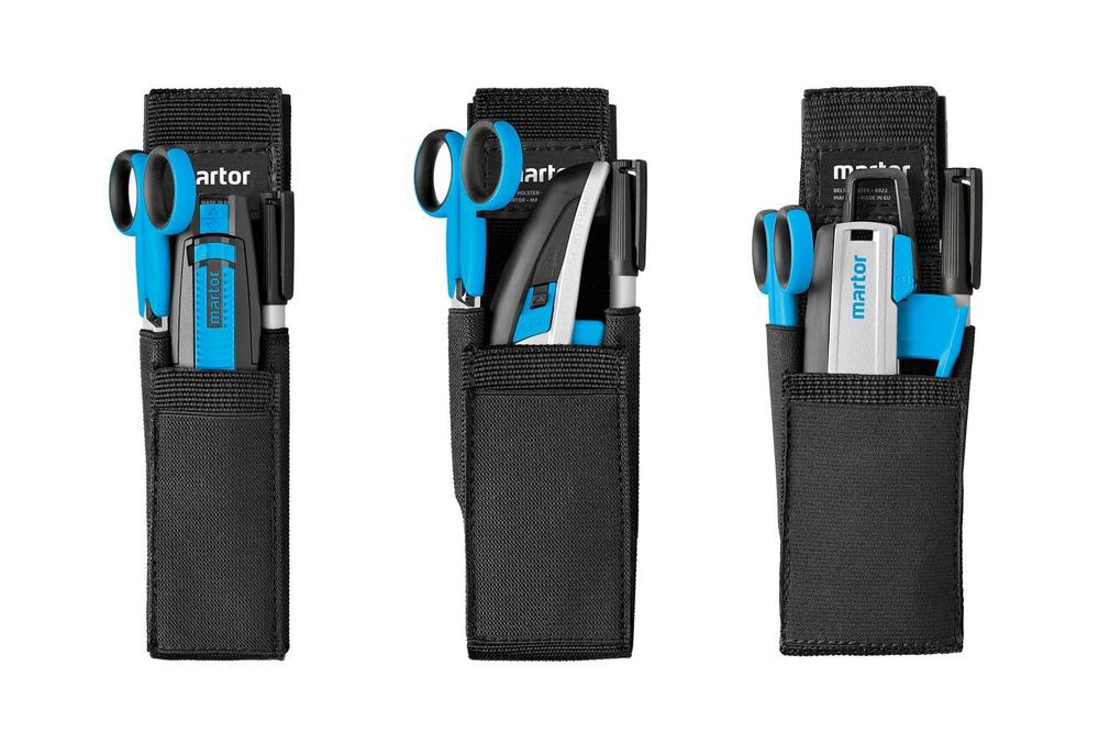 Univerzálne látkové puzdro pre uloženie Martor bezpečnostných nožov a nožníc. Dve možnosti pripevnenia - zapínanie na suchý zips je vhodné pre pripnutie k opasku, klips možno použiť na pripevnenie puzdra aj inde na Vašom odeve, napríklad ku vrecku nohavíc. Materiál odolný proti opotrebeniu, ktorým je nylon prateľný pri 40 ° C, pevne zošitý zdvojenými švy, ktoré odolajú aj nepretržitému namáhaniu. Prídavné priehradky môžete využiť flexibilne podľa vlastných potrieb, napríklad na uloženie ceruzky alebo balenie čepeľou. Testované a certifikované na na absenciu škodlivých látok a bytelnost.