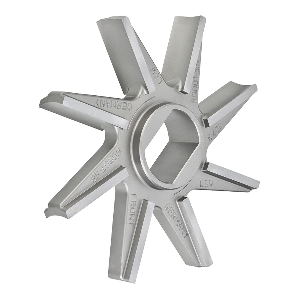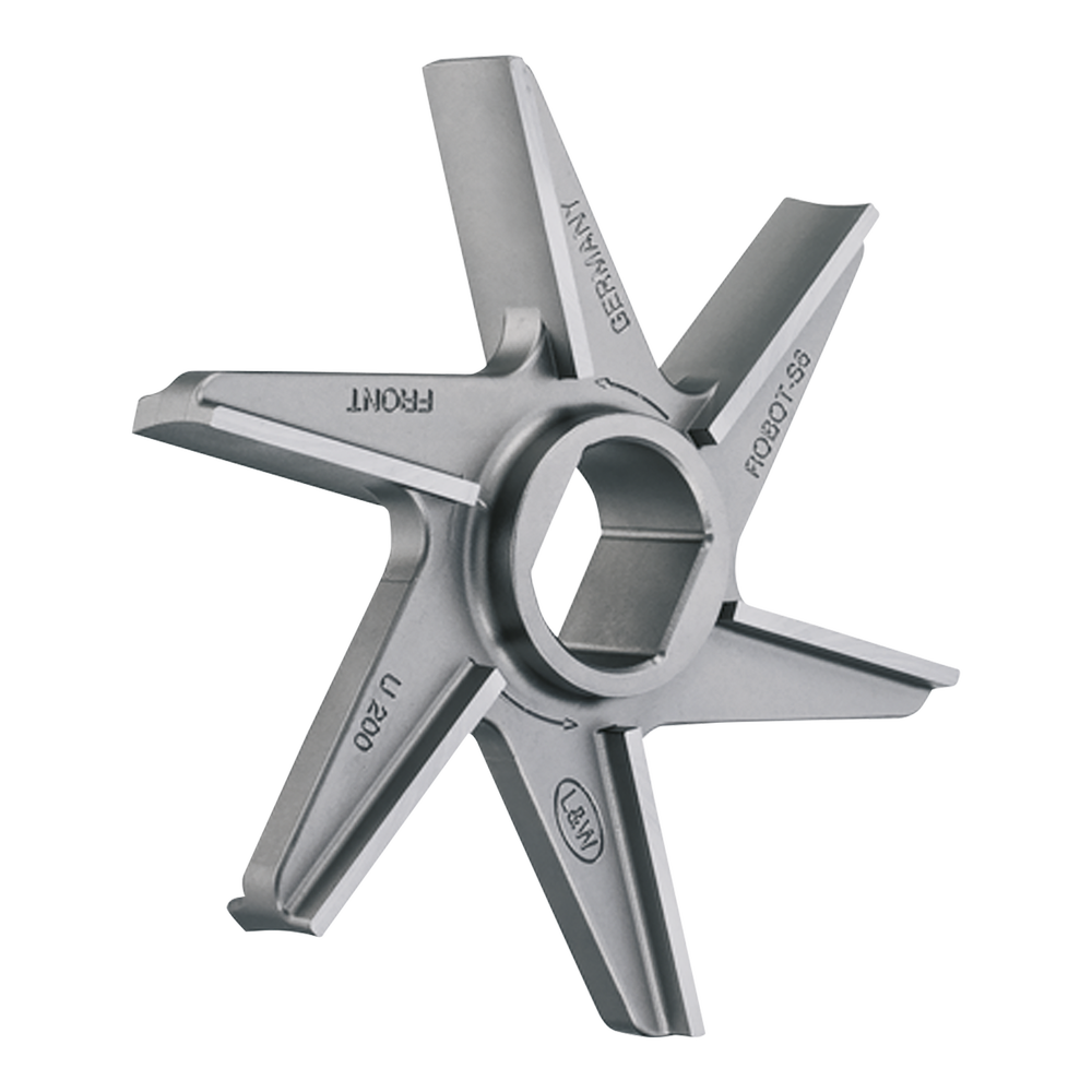 Robotický nůž UNGER od výrobce Lumbeck & Wolter je součástí profesionální řezné sady mlýnků na maso používaných v potravinářském průmyslu, řeznictvích i gastronomii. Tento typ nože je navržen pro použití v systému UNGER, kde spolupracuje s předřezávačem a mlecí deskou a zajišťuje efektivní a rovnoměrné zpracování suroviny. Speciální konstrukce robotického nože umožňuje vysoký řezný výkon a stabilní průchod materiálu řeznou sadou, což přispívá k optimální struktuře mletého produktu. Nože jsou vyráběny z kvalitní oceli s vysokou odolností proti opotřebení, takže jsou vhodné i pro náročný provoz a zpracování tvrdších surovin, například hluboce zmraženého masa. Produkty Lumbeck & Wolter jsou vyráběny v Německu s důrazem na přesnost výroby, kvalitní materiály a dlouhou životnost. Díky tomu jsou široce používané v profesionálních potravinářských provozech po celém světě. Materiál: nástrojová ocel (Toolsteel); nerezová ocel (INOX); vysoce odolná ocel – Strong verze Typy provedení: - Robot-S4 HD with fixed ring - Robot-S4 HD with ring - Robot-S6 HD with ring - Robot-S8 HD with ring - Robot, single-edged / 4 fugitive - Robot-S4 / 4 bladed - Robot-S6 / 6 bladed - Robot-S8 / 8 bladed S4 / S6 / S8 = počet břitů nože HD = heavy duty (zesílené provedení) with ring / fixed ring = provedení s kroužkem stabilizujícím nůž Průměr (typ stroje): R – 70 mm; H – 82 mm; A – 90 mm; B – 98 mm; C – 106 mm; D – 114 mm; E – 130 mm; G – 160 mm; FW – 200 mm; U – 200 mm; WK200 – 200 mm; V250 – 250 mm; WK250 – 250 mm; K – 280 mm; W – 300 mm